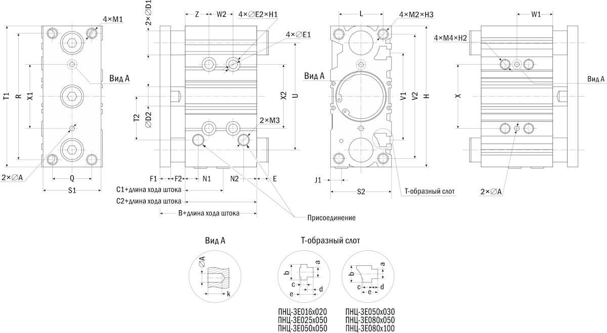 | ПНЦ-3Е016х050 | M5×0,8 | M5×0,8 | M5×0,8 | M5×0,8 |