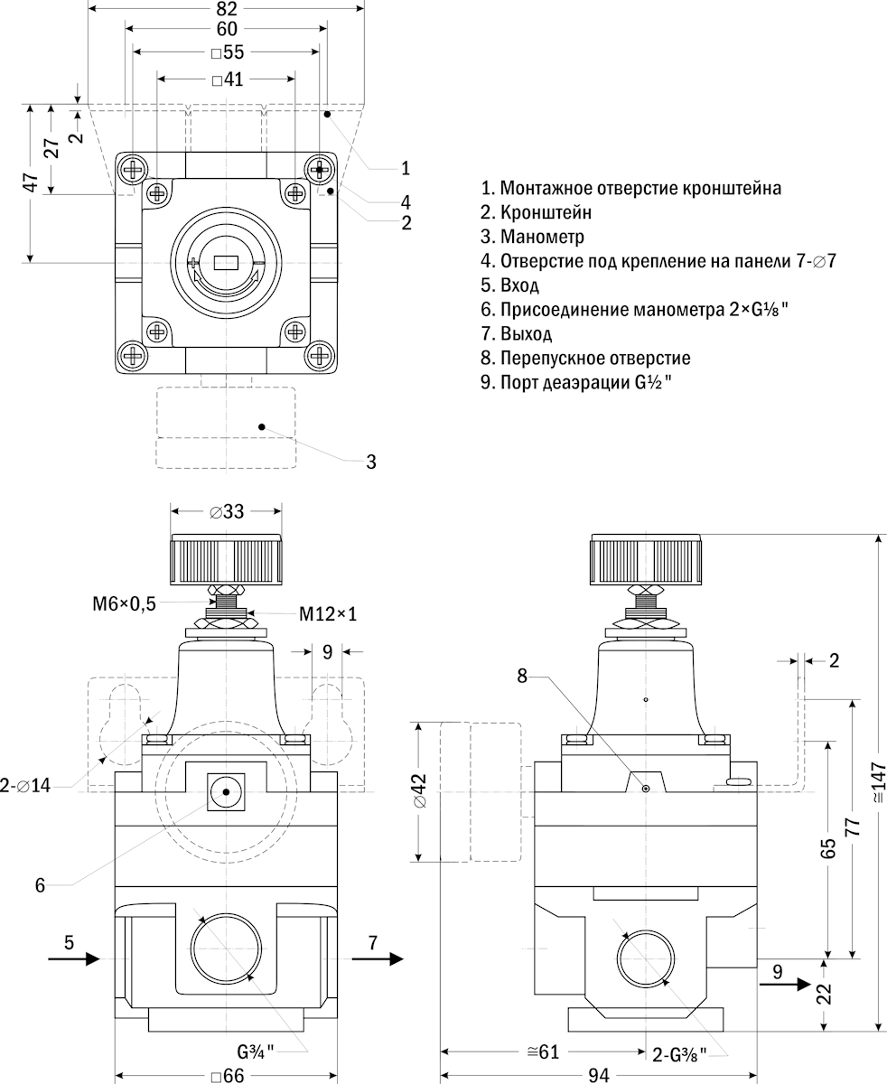 - Все модели регулятора имеют два боковых резьбовых патрубка для присоединения манометра