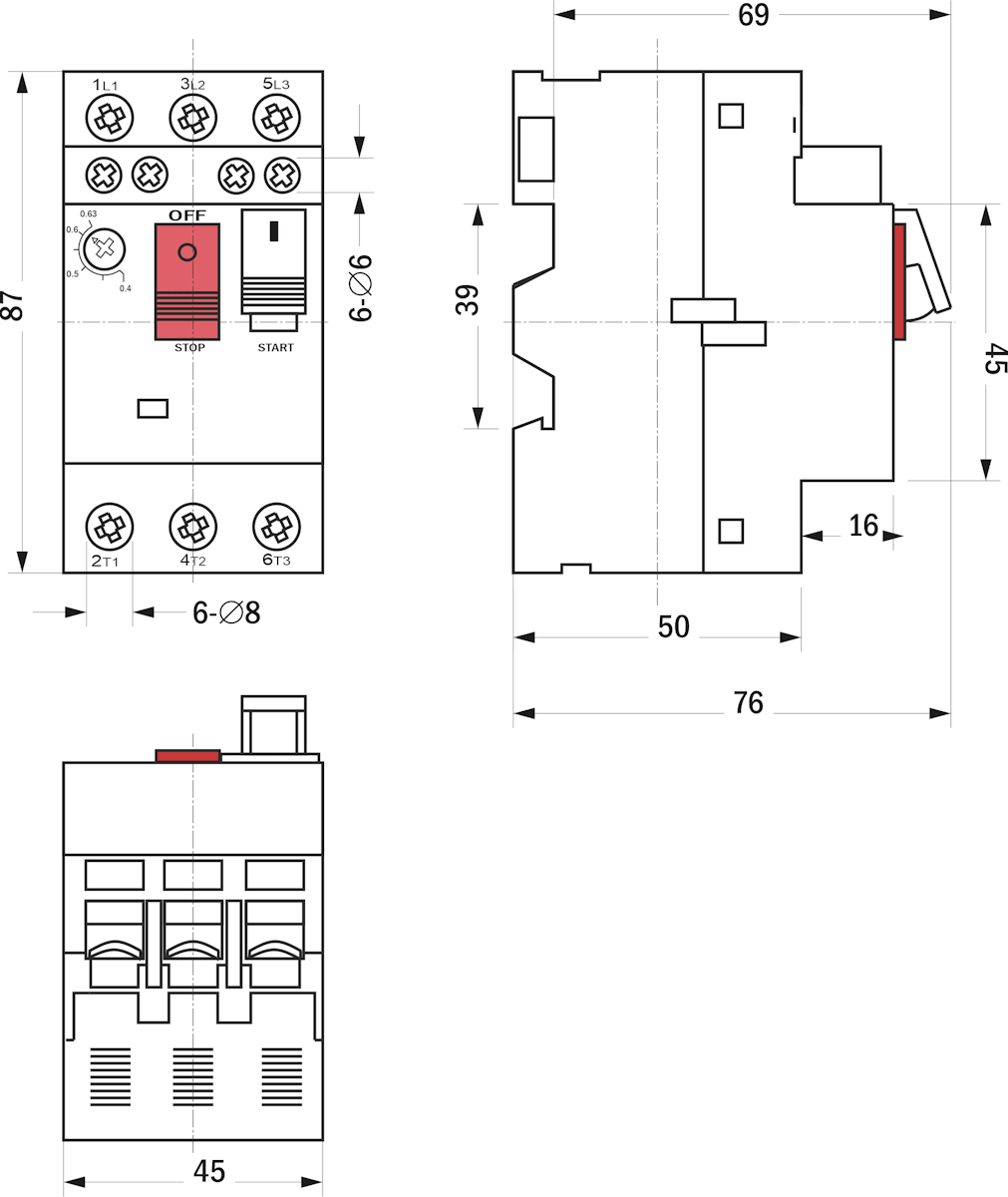 • Совмещение функций автомата защиты двигателя и ручного пускателя